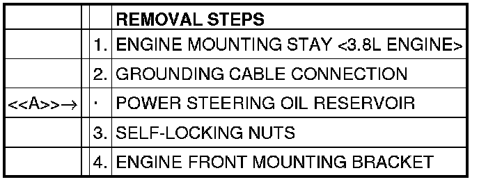 2. After removing the power steering oil reservoir, secure it with a cord in the location where the removal and installation of the engine front mounting bracket cannot be hindered.