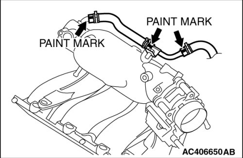 Insert vacuum hose with its paint mark facing upward.