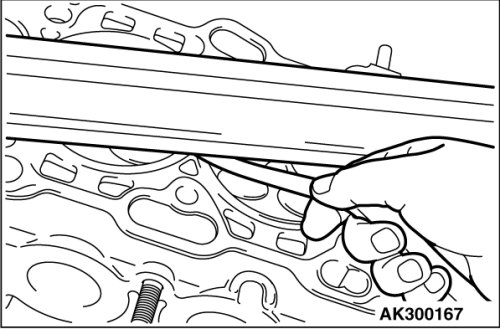 1. Check the cylinder head gasket surface for flatness by using a straight edge and feeler gauge.