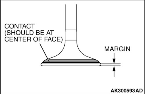 1. Check the valve seat contact. Valve seat contact should be uniform at the center of the valve face. If incorrect, reface using a valve refacer.