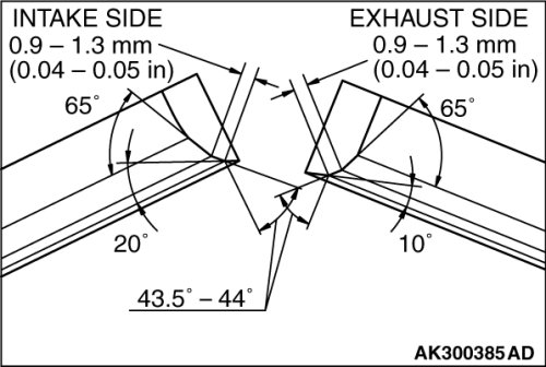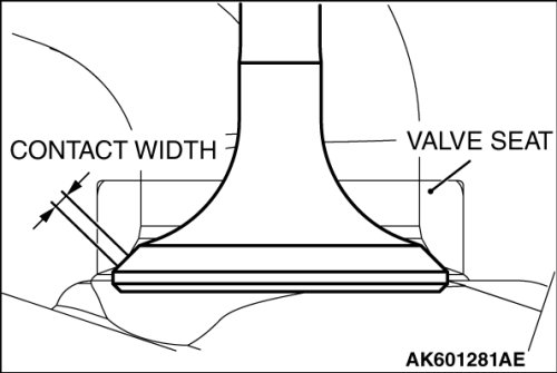 If the variation in the width exceeds 0.2 mm (0.008 inch) even if the contact width is within the standard value, replace or correct the valve seat.