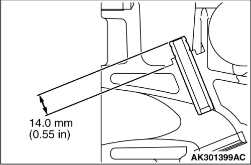 3. Press-fit the valve guide until it protrudes 14.0 mm (0.55 inch) from the cylinder head top surface as shown in the illustration.