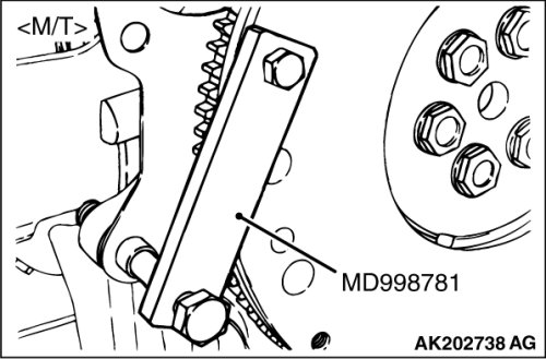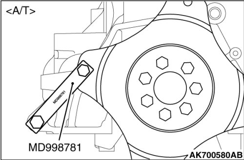 1. Using special tool MD998781, hold the drive plate or flywheel.