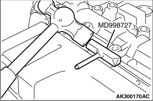 1. Align the special tool, Plug Wrench (MD998162), with the notch.