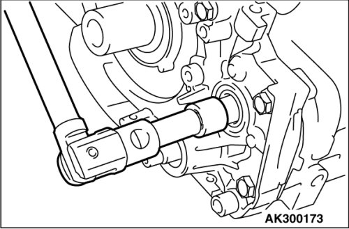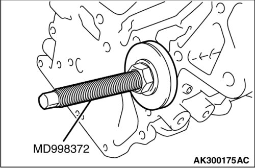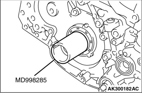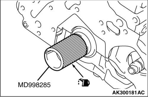 1. Set special tool MD998285 on the front end of crankshaft and apply a thin coat of engine oil to the outer surface of special tool MD998285.
