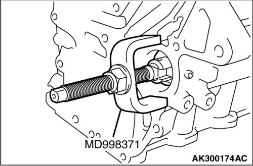 Using special tool MD998371, remove the counterbalance shaft front bearing from the cylinder block.