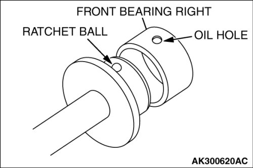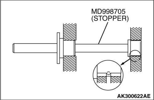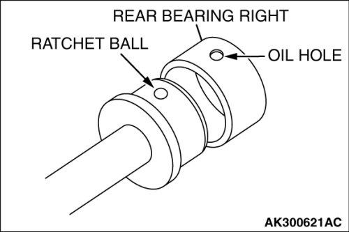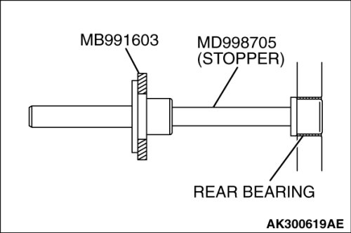 2. Align the ratchet ball of special tool MD998705 with the oil hole in the rear bearing to install the bearing of special tool MD998705.