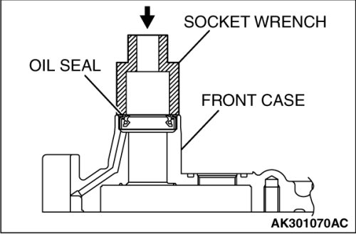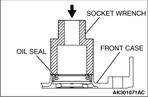 Using a suitable socket wrench, install the oil pump oil seal into the front case.