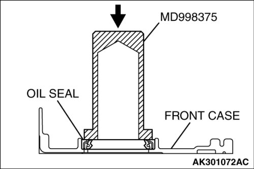 Using special tool MD998375, install the crankshaft front oil seal into the front case.