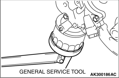 3. Using general service tool, install the oil filter to the bracket and tighten it to the specified torque.