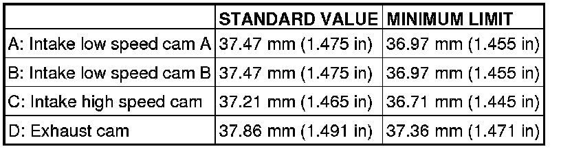 Measure the cam height. If it is below the limit, replace the