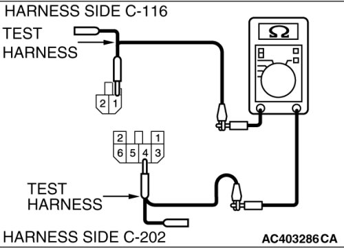 (1)Disconnect blower motor connector C-116 and junction block connector C-202, and measure the resistance at the wiring harness side.