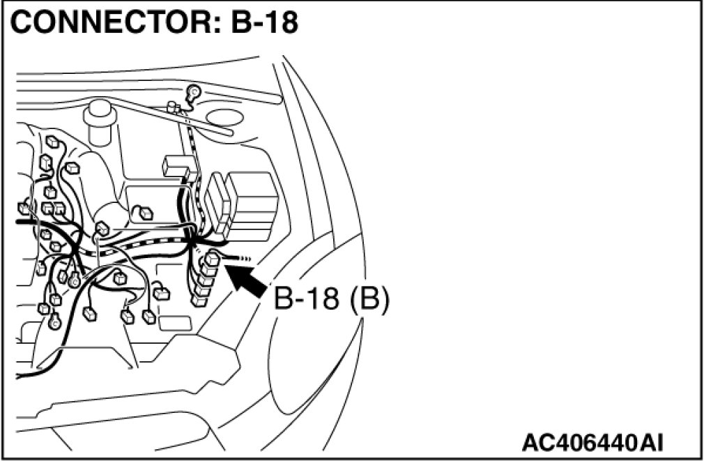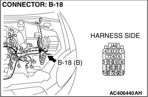 (3)Disconnect ECM [M/T] or PCM [A/T] connector B-18 and ground harness side terminal No.5.