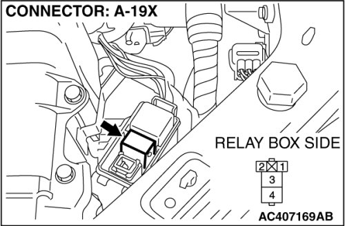STEP 7. Measure the voltage at condenser fan relay connector A-19X.