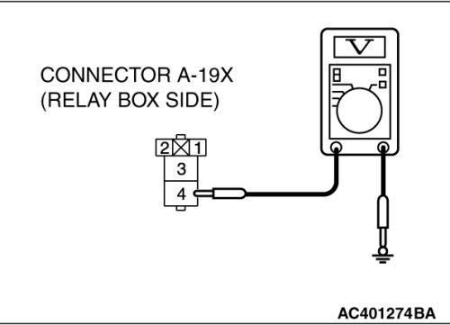 (1)Disconnect condenser fan relay connector A-19X, and measure the voltage at the relay box side.