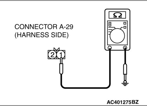 STEP 11. Measure the resistance at condenser fan motor connector A-29 in order to the ground circuit to the blower motor.