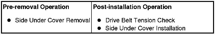 The following operations are required due to the serpentine drive system with the drive belt auto-tensioner.