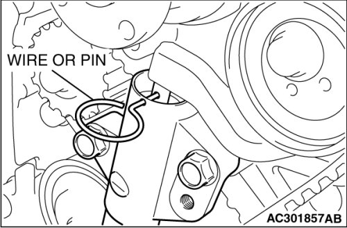 When the wire or pin can be easily removed, appropriate tension is applied on timing belt. In this case, remove wire or pin.
