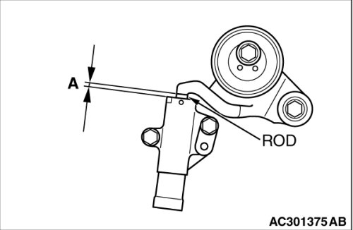 Also when the projection of timing belt tensioner adjuster rod (A) is within the standard value, appropriate tension is applied.