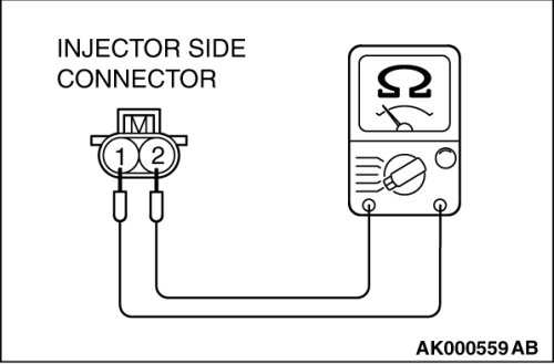 (2)Measure the resistance between each injector side connector terminal No. 1 and No. 2.