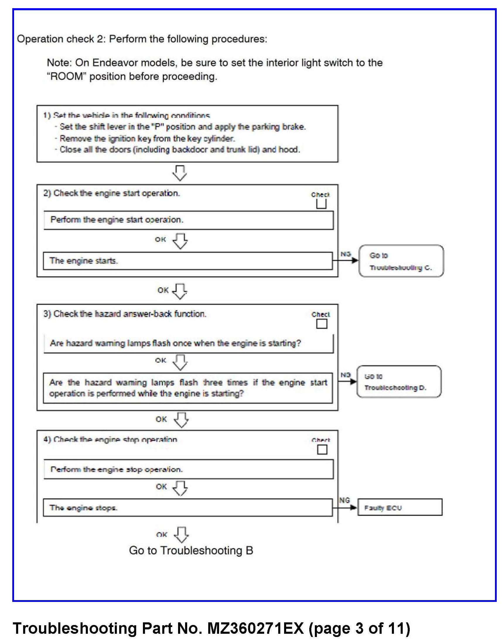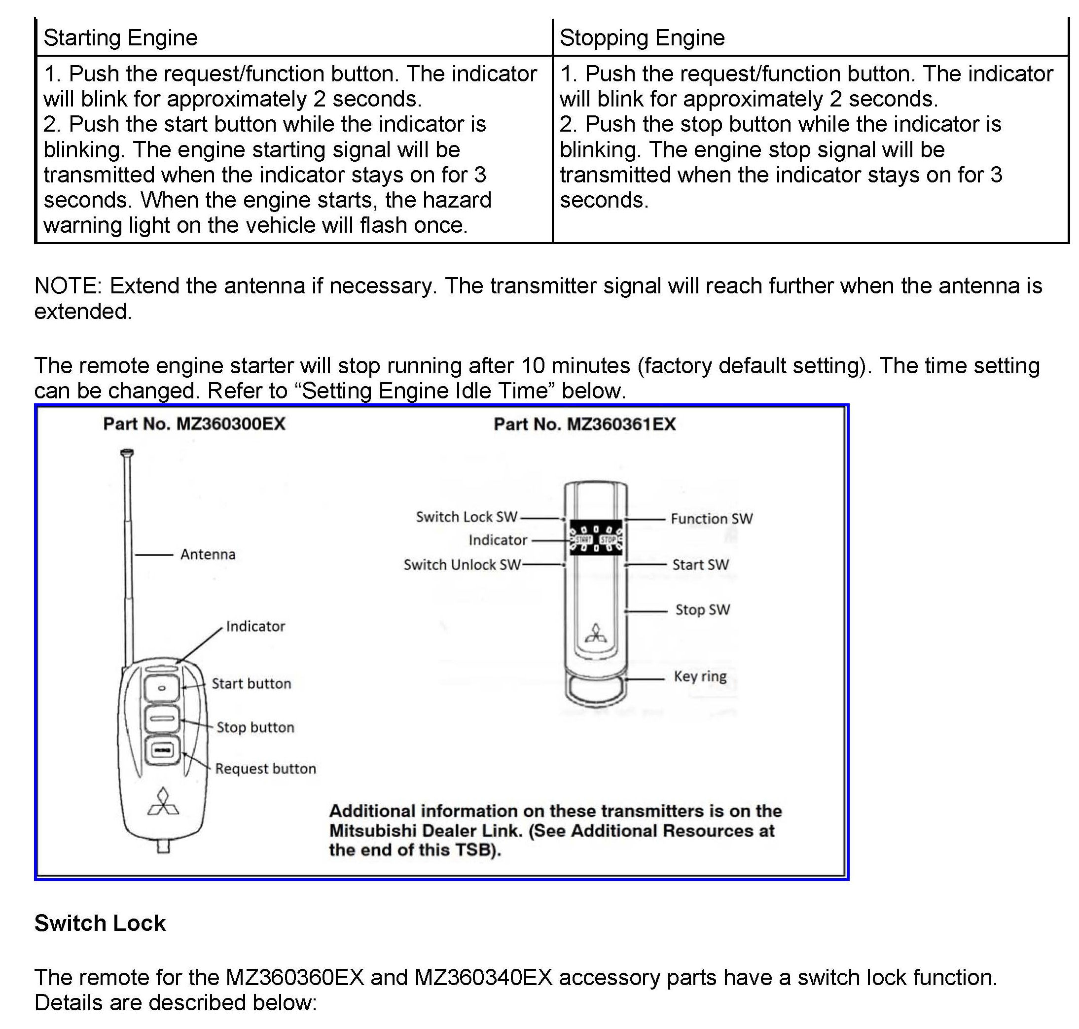 1. Remote Engine Start installation and basic troubleshooting information are on the Mitsubishi Dealer Link: