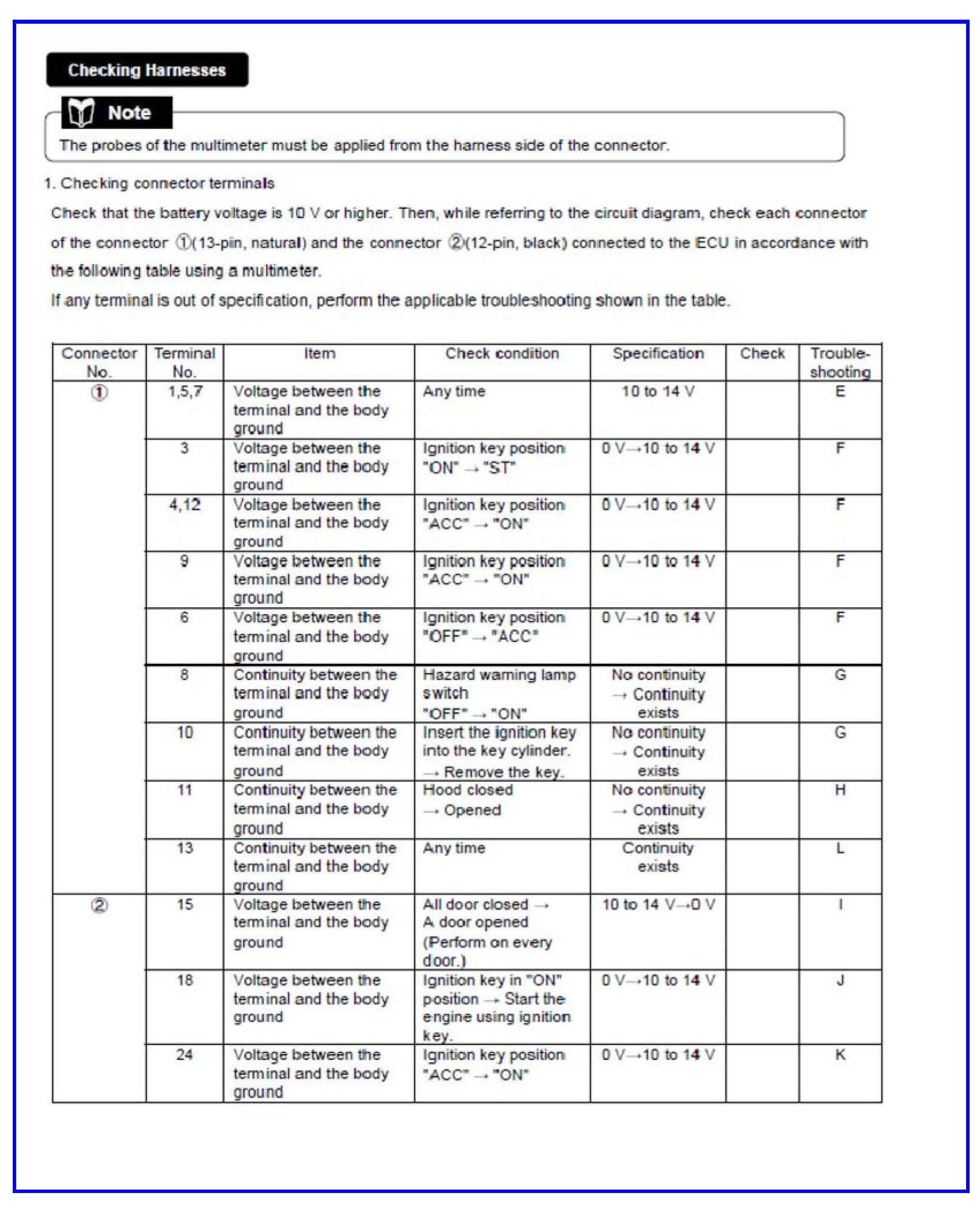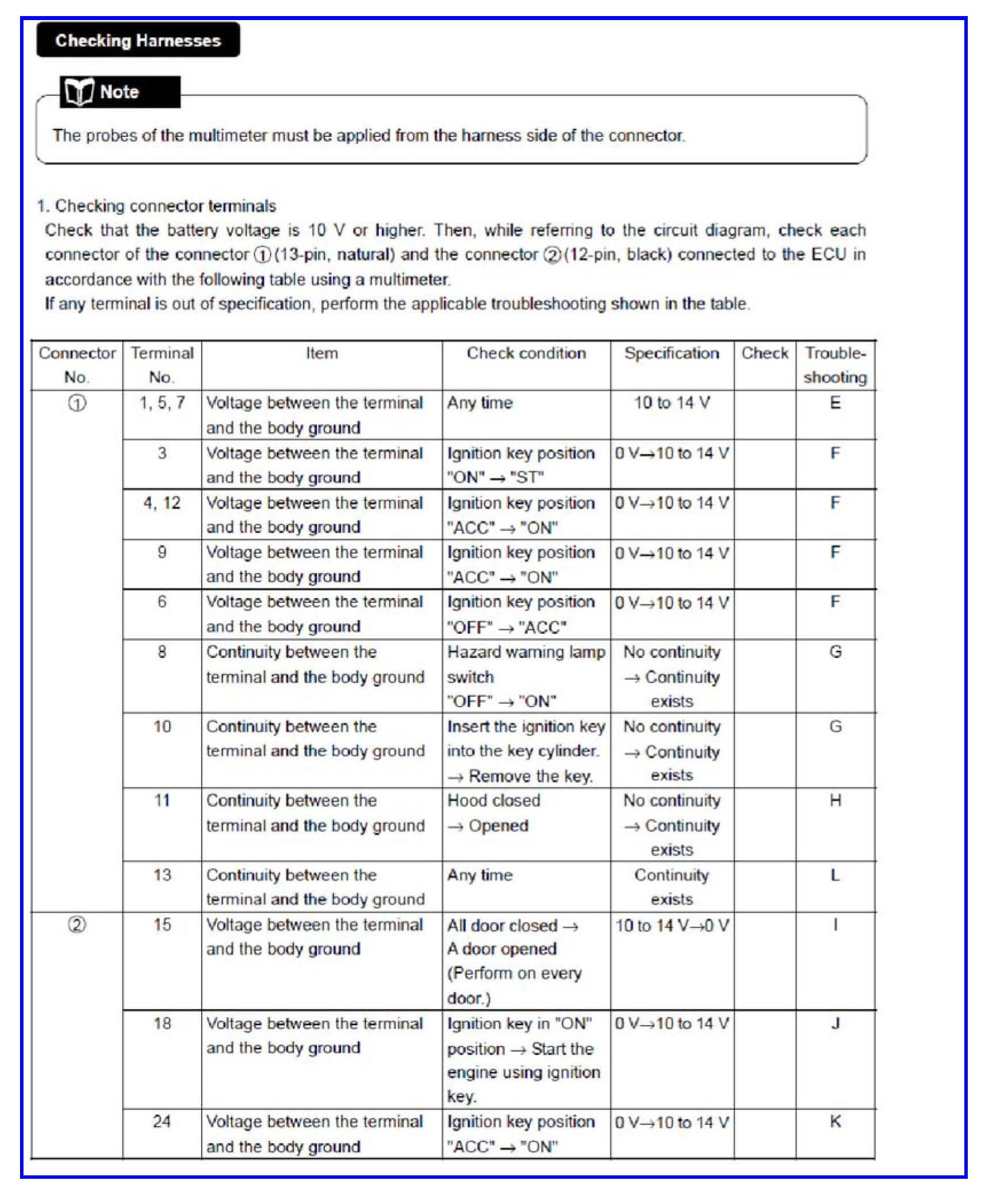 ^ Key removed from ignition (for KOS equipped vehicles the ignition switch is in the LOCK position)