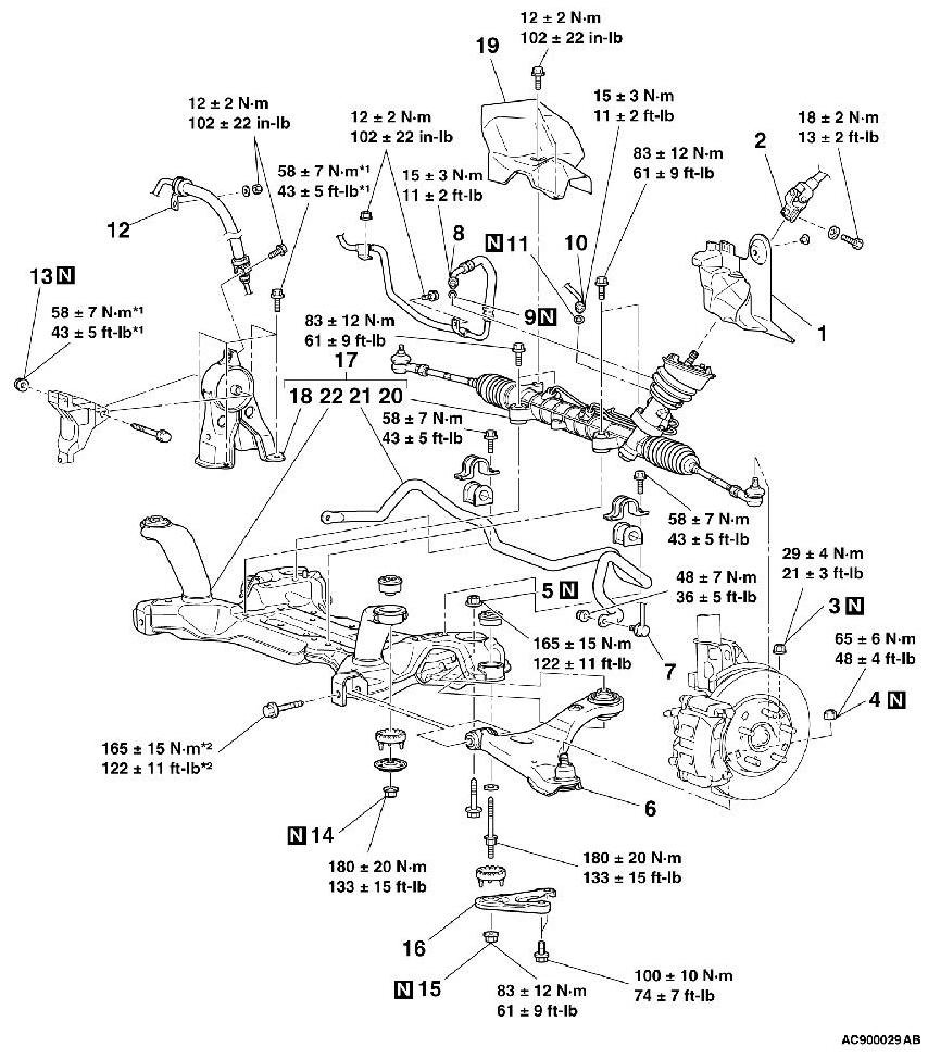 - *1: Indicates parts which should be initially tightened, and then fully tightened after placing the vehicle horizontally and loading the full weight of the engine on the vehicle body.