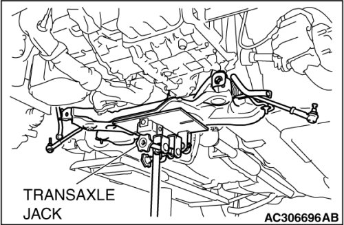 1. Use a transaxle jack to lift the crossmember assembly.