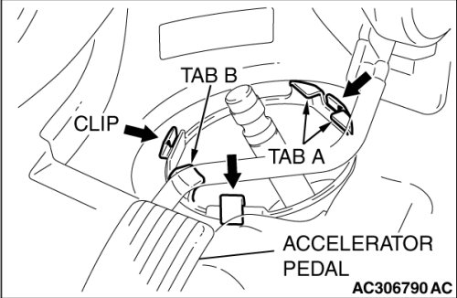 2. From inside the vehicle, pull tab A and then tab B to secure the three clips to the body panel.