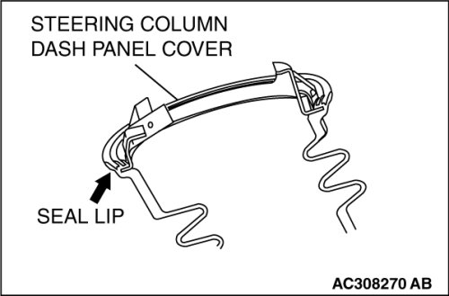 When securing the steering column dash panel cover to the body panel, be careful that the seal lip does not move backwards.