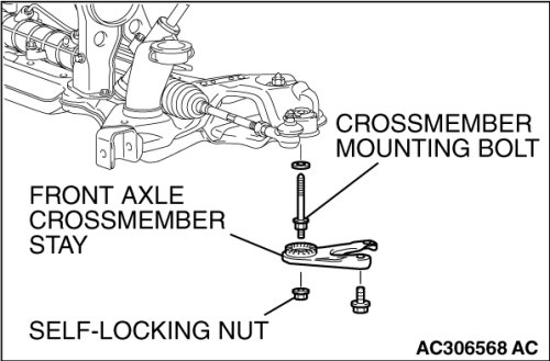 ]]C[[ FRONT AXLE CROSSMEMBER STAY/SELF-LOCKING NUTS INSTALLATION