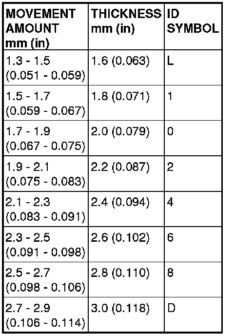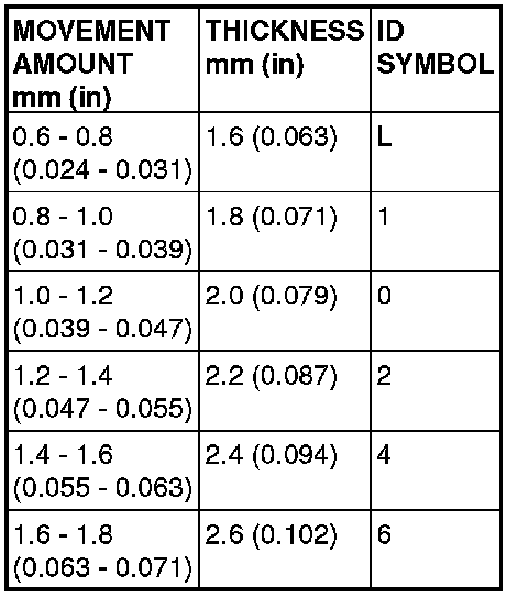 28. Select a spacer whose thickness corresponds to the measured amount of movement from the following table.