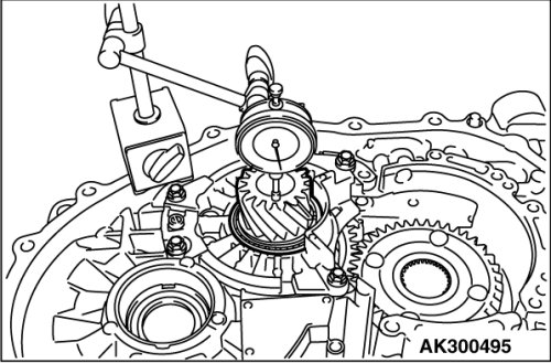 Install special tool MD998913 in a dial gauge, and then move special tool MB991631 and measure its movement.