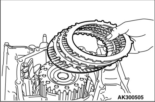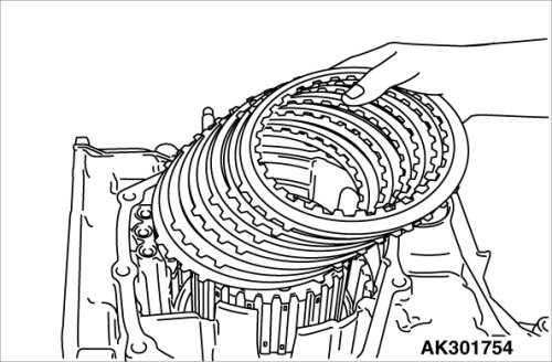 - Apply ATF to friction components, rotating parts, and sliding parts before installation. Immerse new clutch discs or brake discs in ATF for at least two hours before assembling them.