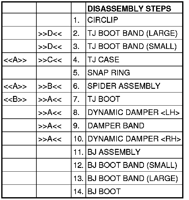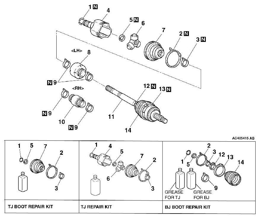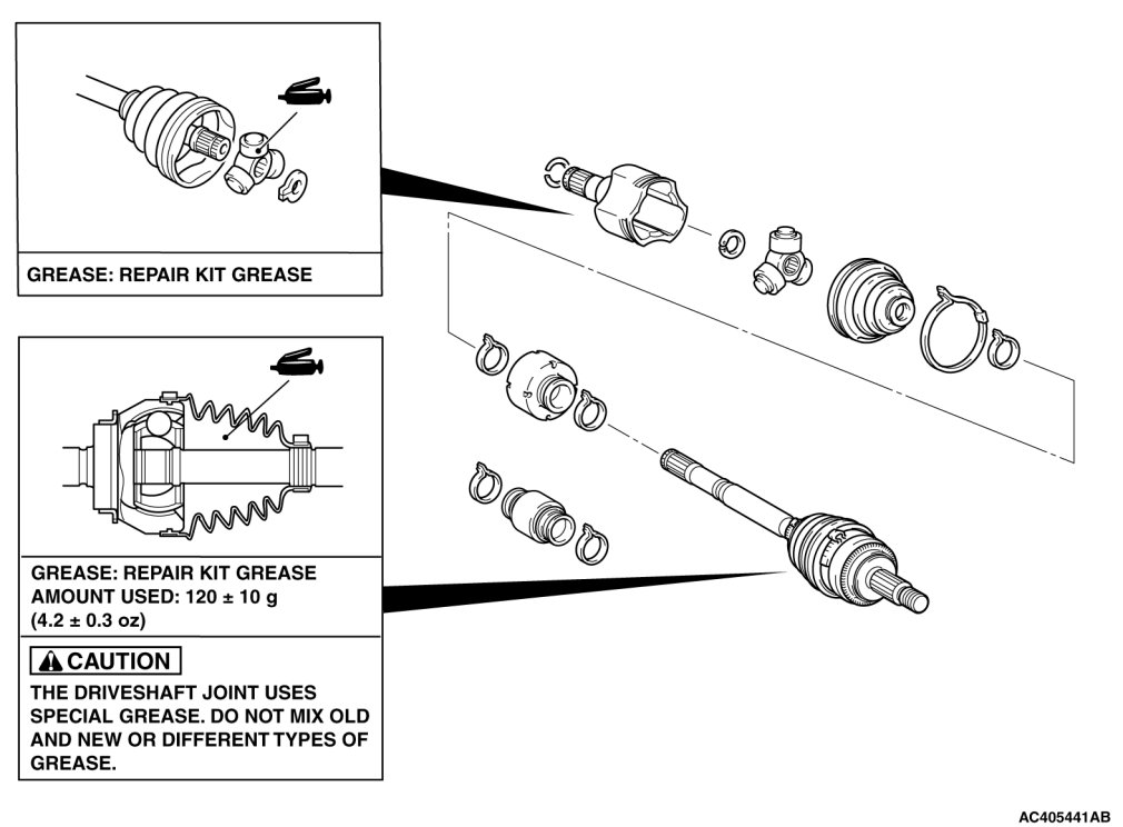 - The driveshaft joint use special grease. Do not mix old and new or different types of grease.