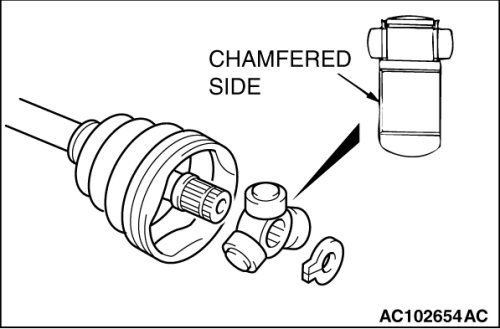 2. Install the spider assembly to the shaft from the direction of the spline chamfered side.