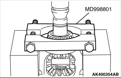 1. Using special tool MD998801, support the taper roller bearing, and then set them on the press.