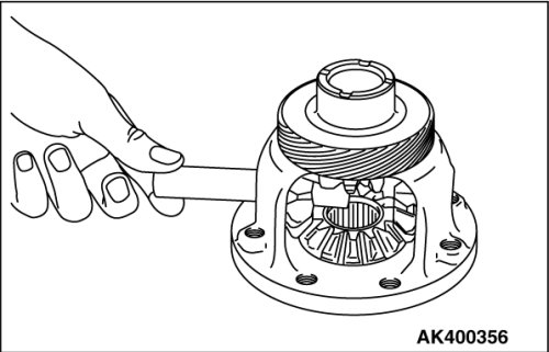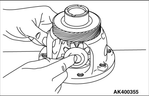 1. After a spacer has been mounted on the back surface of the side gear, install the side gear in the differential case.