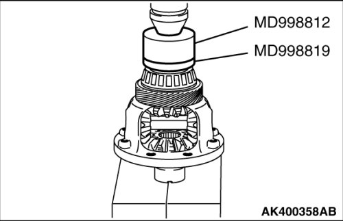 Using special tools MD998812 and MD998819, install the taper roller bearing with the press.