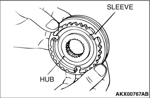 1. Combine the synchronizer sleeve and hub, and check that they slide smoothly.