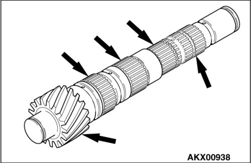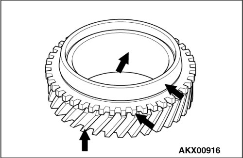 3. Check that the gear inside diameter and front and rear surfaces are not damaged and worn.