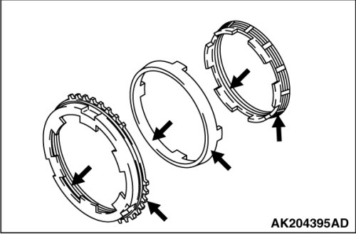 2. Check that the synchronizer cone surfaces are not roughened, damaged or worn.