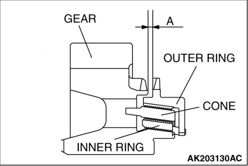 2. Install the outer ring, inner ring and cone, force them toward the gear, and check clearance