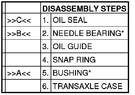 *:Refer to the needle bearing and bushing installation procedures only when replacing the transaxle case.