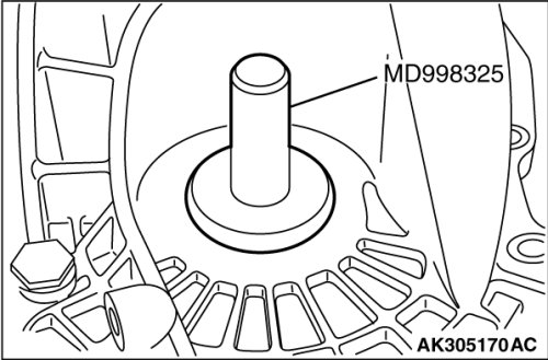 2. Using special tool MD998325, press fit the oil seal into the transaxle case.