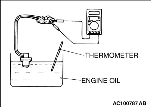 2. When the oil temperature reaches the standard value, check that voltage is supplied between the terminals.