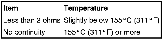 When the oil temperature is 155°C (311°F) or more and there is no continuity, the resistance will not be 2ohms or lower until the oil temperature reduces to 125°C