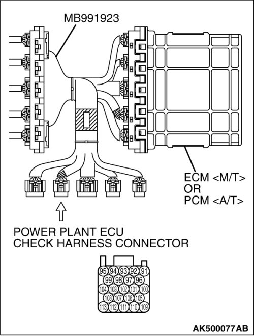 connectors. Connect the check harness special tool (MB991923) between the separated connectors.