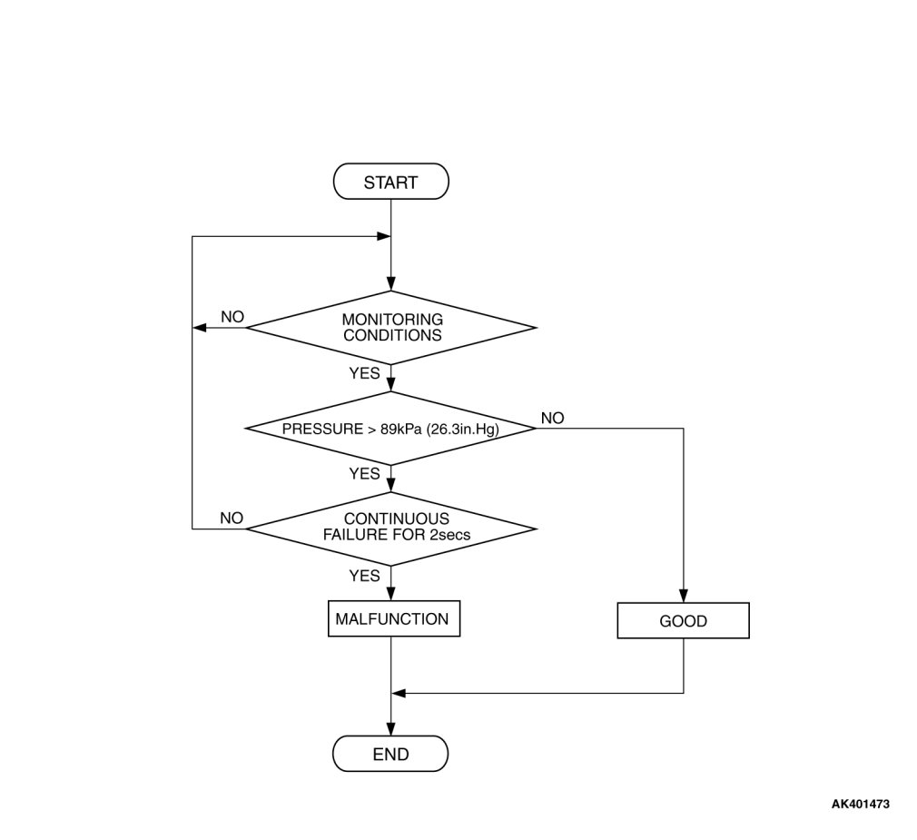 - Manifold absolute pressure is 89 kPa (26.3 in.Hg) or higher for 2 seconds.