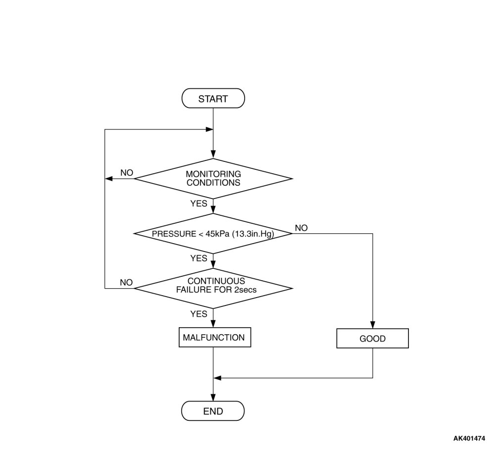 - Manifold absolute pressure is 45 kPa (13.3 in.Hg) or lower for 2 seconds.